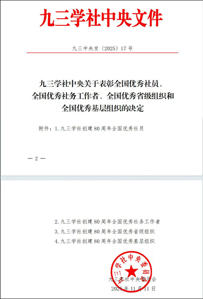 【喜报】我校在九三学社创建80周年全国优秀社员和全国优秀基层组织表彰中喜获佳绩