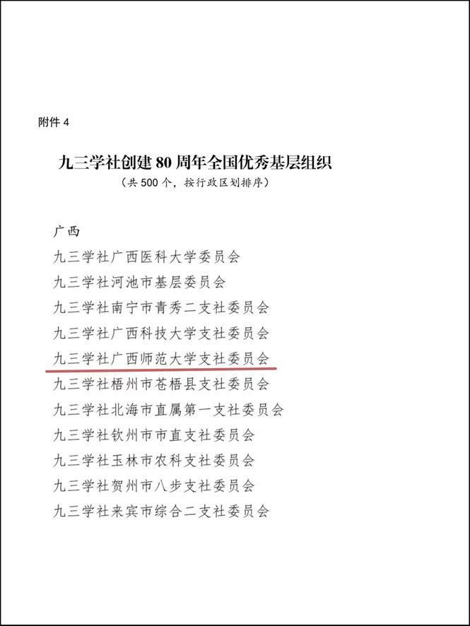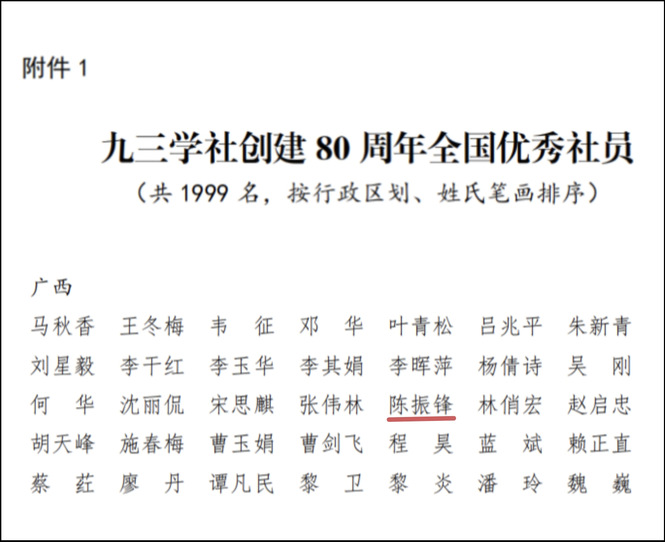 近日,九三学社中央公布了《关于表彰全国优秀社员、全国优秀社务工作者、全国优秀省级组织和全国优秀基层组织的决定》,我校九三学社支社荣获“全国优秀基层组织”称号,支社主委、化学与药学学院院长陈振锋荣获“全国优秀社员”称号。