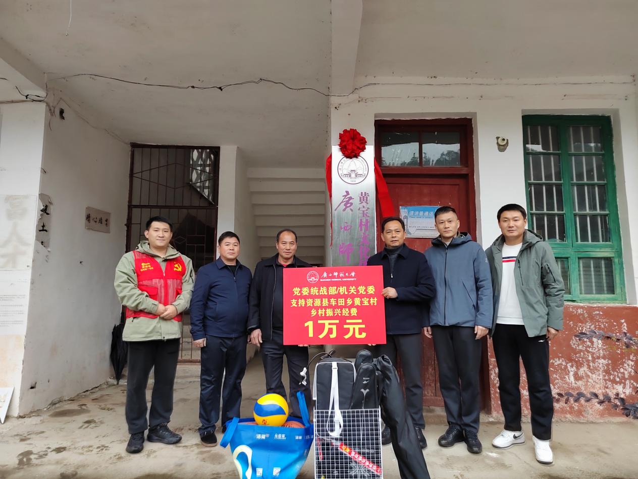 在黄宝村文化体育活动中心揭牌仪式上,调研慰问组一行与陪同人员共同为该活动中心揭牌。毛立刚表示,学校将持续发挥自身优势,精准对接地方需求,与资源县及车田苗族乡携手同行,为扎实推进乡村全面振兴贡献力量。为帮扶壮大村级产业,党委统战部/机关党委向黄宝村捐助乡村振兴专项资金,定向支持其高山果蔬果脯蜜饯加工产业项目发展,助力村集体经济提质增效。