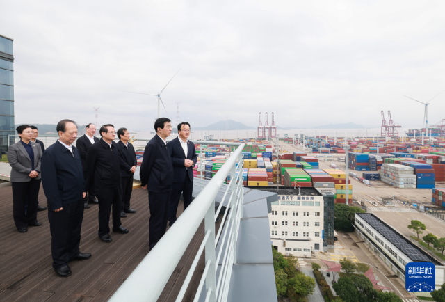 在宁波,王沪宁来到宁波帮博物馆、天一阁博物院,听取宁波帮发展历史、优良传统、商业成就、家国情怀等情况介绍,了解文化遗产保护情况。他表示,要挖掘利用统战资源特色优势,发挥历史文化凝心聚力的作用,引导人们弘扬家国情怀、爱国奋斗精神,为中国式现代化贡献力量。在考察宁波舟山港穿山港区和有关台企时,他表示,国家对进一步全面深化改革、扩大开放出台许多新部署新举措,要认真抓好落实、不断见到实效。要推动两岸经济文化交流合作,吸引更多台商台企参与两岸融合发展,共享祖国大陆发展成果。