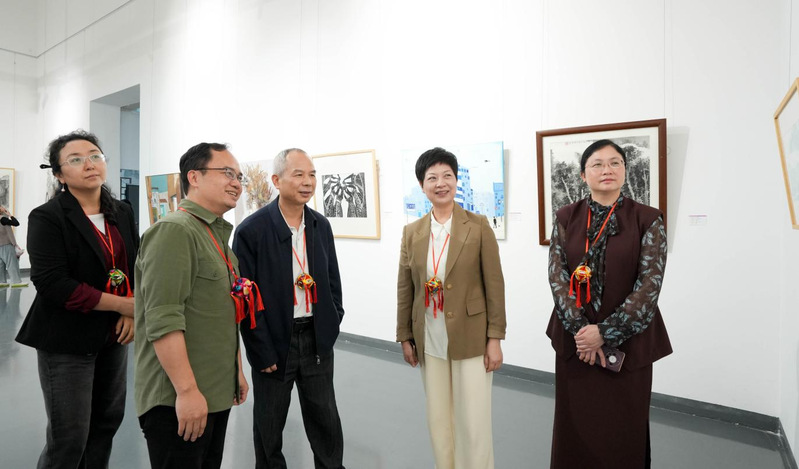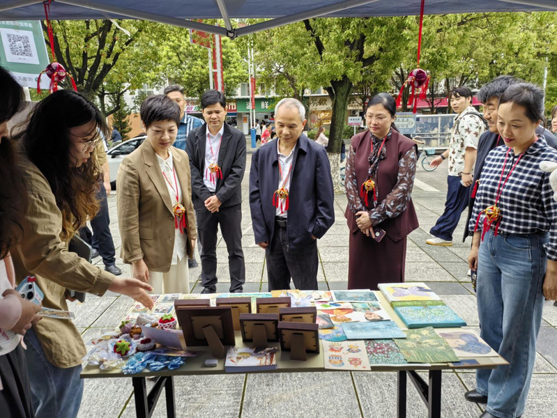 与会领导与师生一同参观作品展、逛文创集市,近距离欣赏师大美术师生的创作风采,沉浸式感受八桂民族文化的独特魅力,在浓厚的艺术氛围中传承民族文化、凝聚同心力量。