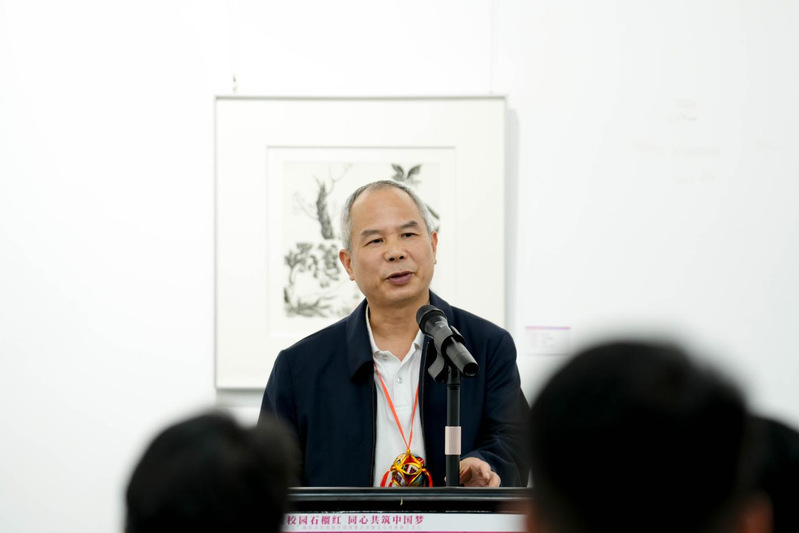 李先贤在致辞中指出,广西三月三是八桂大地各民族共庆共享的文化盛会,是传承民族文脉、凝聚民族情感的重要载体。学校始终以铸牢中华民族共同体意识为主线,深度推动美育与立德树人、民族文化传承有机融合。本次作品展与文创集市,是学校美育成果与民族团结教育成效的集中彰显,他希望全体师生以艺术为桥梁,深耕民族文化,讲好八桂故事、中国故事,让民族团结之花在师大校园常开长盛。