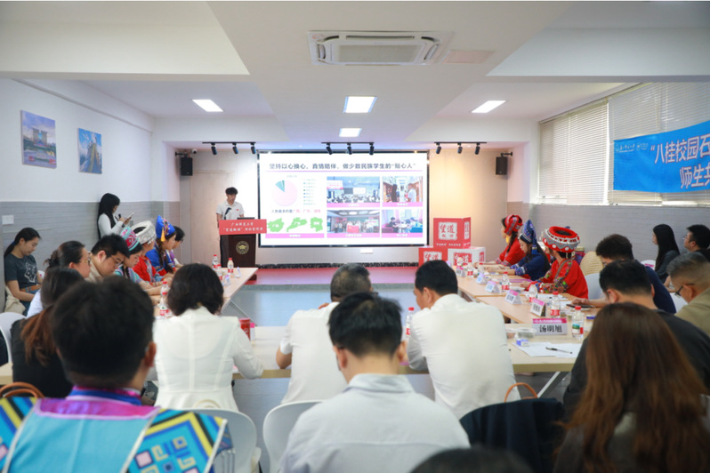在“广西三月三”佳节即将到来之际,4月14日,广西师范大学在雁山校区举办“八桂校园石榴红,同心共筑中国梦”铸牢中华民族共同体意识专题宣讲暨师生共话民族情座谈会。在一个小时的活动里,理论宣讲、文化展示、师生座谈与生活体验交织互融,学校统战、研工、后勤等多部门协同发力,探索出一条“大思政课”的创新路径。